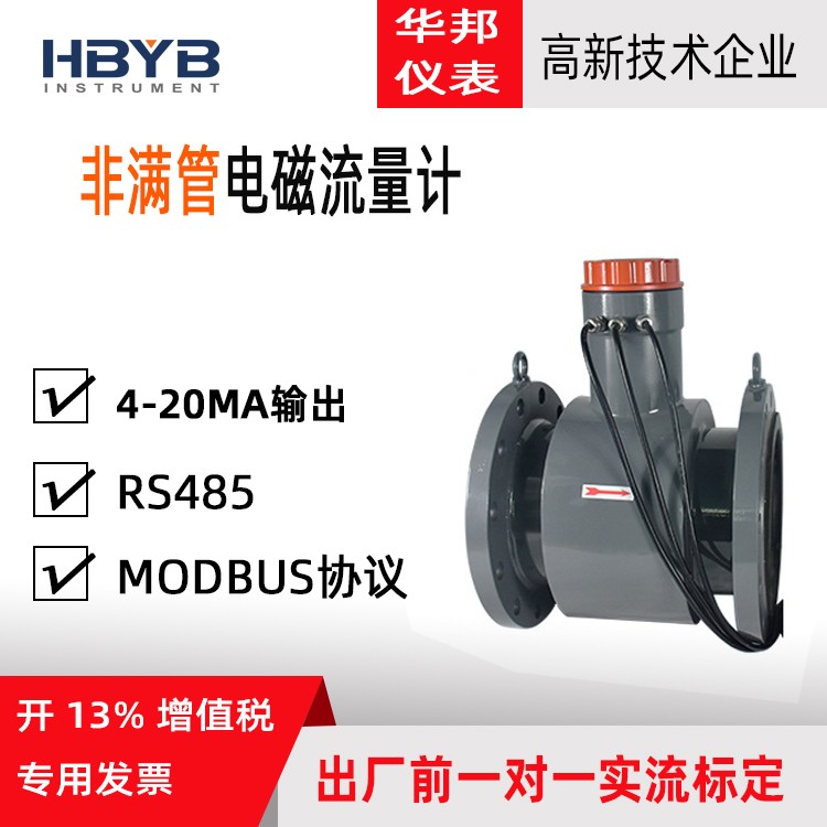 华邦仪表污水河水液体管道不满管电磁流量计防腐